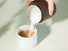 エスプレッソやドリップコーヒーなどに合わせる、フォームミルクやスチームミルクを作るのに便利なミルクピッチャーです。ラテアートでの使用時は、ハンドルが無い分、注ぎ口と持ち手の距離が近く、細かな表現が可能です。ココアや抹茶など、ミルクと合わせたアレンジドリンクの攪拌用にと、便利に幅広く使えます。
