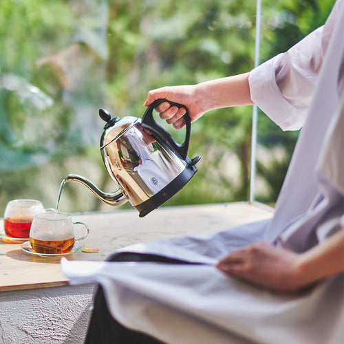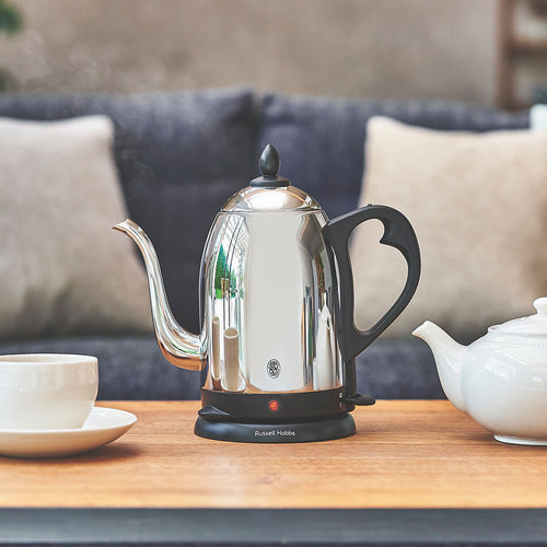⼀般的な電気ジャーポットは、残り湯を捨てづらく、⽔を⾜して沸かすことが多いようです。しかし、ラッセルホブスのカフェケトルなら、やかんと同じ感覚で使⽤でき、注ぎ⼝が下のほうについているから、残り湯をより捨てやすくなり、いつでも新鮮なお湯を沸かせます。しかも、間⼝が広く⼿がラクに⼊るからお⼿⼊れも簡単です。