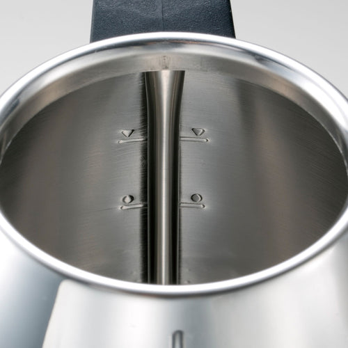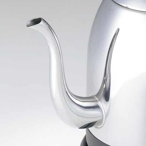 コーヒーポットのような細⻑い注ぎ⼝は、注ぐ湯量を調節しやすく、普段使いはもちろん、コーヒーをドリップしたい時にも便利です。 また、注ぎ⼝が下のほうに付いているから、最後までお湯をしっかりと注ぎきることができます。